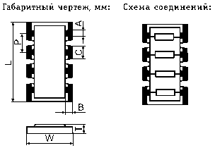ЧИП 1206 abcd 0603x4, где: abc - номинал резистора; d - точность; 0603x4 - количество резисторов в сборке