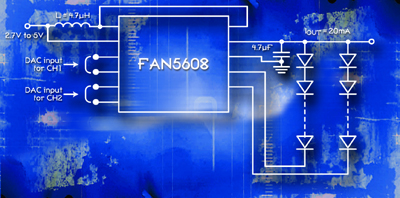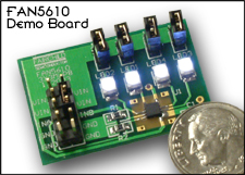 | FAN5610 | Драйвер СИД для белых, синих и любых многоцветных СИД | MLP | да | 7,5% | 4 | 20 мА | 2,7-5,5 | нет | ШИМ, цифровой | да | |