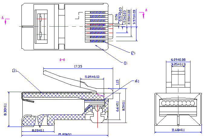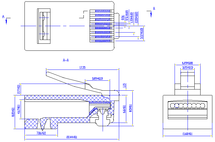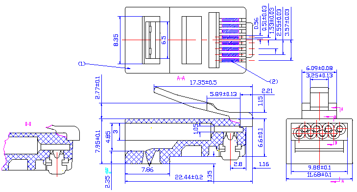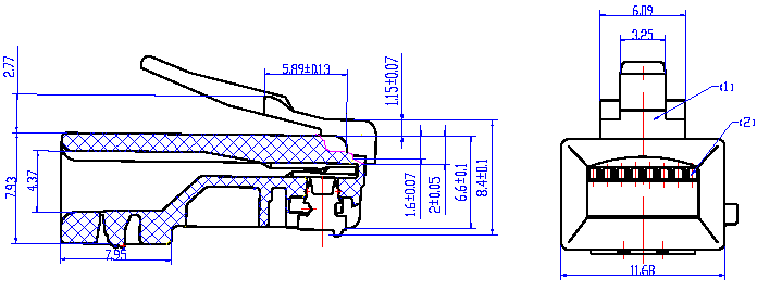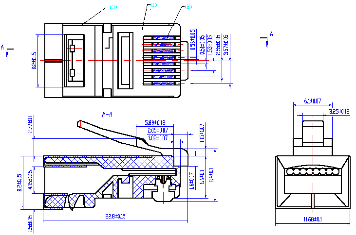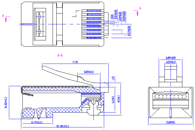 | TP8P8C вил. (019) + вставка | TP8P8C вил. (041) с мет. кожухом | ||