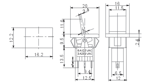 - Рабочее напряжение/рабочий ток: 3A 250В AC; 6A 125В AC