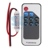 Комплект диммер с пультом для MIX светодиодной ленты (ШИМ). Питание/рабочее напряжение 12-24VDC, максимальный ток 5A на канал, 2 канала, максимальная мощность 120-240W. Габариты контроллера 97x33x18 мм, габариты пульта 139x36x11 мм. Держатель в комплекте.