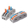Клемма соединительная проходная на 2 контакта, рычажный прижим проводов сечением 0.14-4мм2