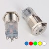 Антивандальная кнопка металлическая без фиксации с точечной подсветкой, посадочная резьба М22, контакт на замыкание и контакт на размыкание, контакты под пайку/под разъем