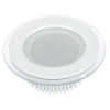 Стеклянная круглая панель 6Вт / ДНЕВНОЙ 4000K / 430лм / 120°. Размер Ф96x45мм (в отверстие Ф72 мм). Корпус белый. Питание от сети 230VAC, мощность 6Вт, драйвер в комлекте 300mA 15-25V. Диапазон рабочих температур -10°..+40°C. Для помещений.