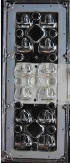 Такое очень гибкое решение позволит быстро и с минимальными затратами создать оптимальную оптику для светильника и даже производить светильники небольшими партиями, а при переходе к массовому производству светильников и заказе моноблочной линзы иметь реальный опыт применения проработанной оптической схемы и быть уверенным в правильности своих инвестиций в дорогую пресс форму.