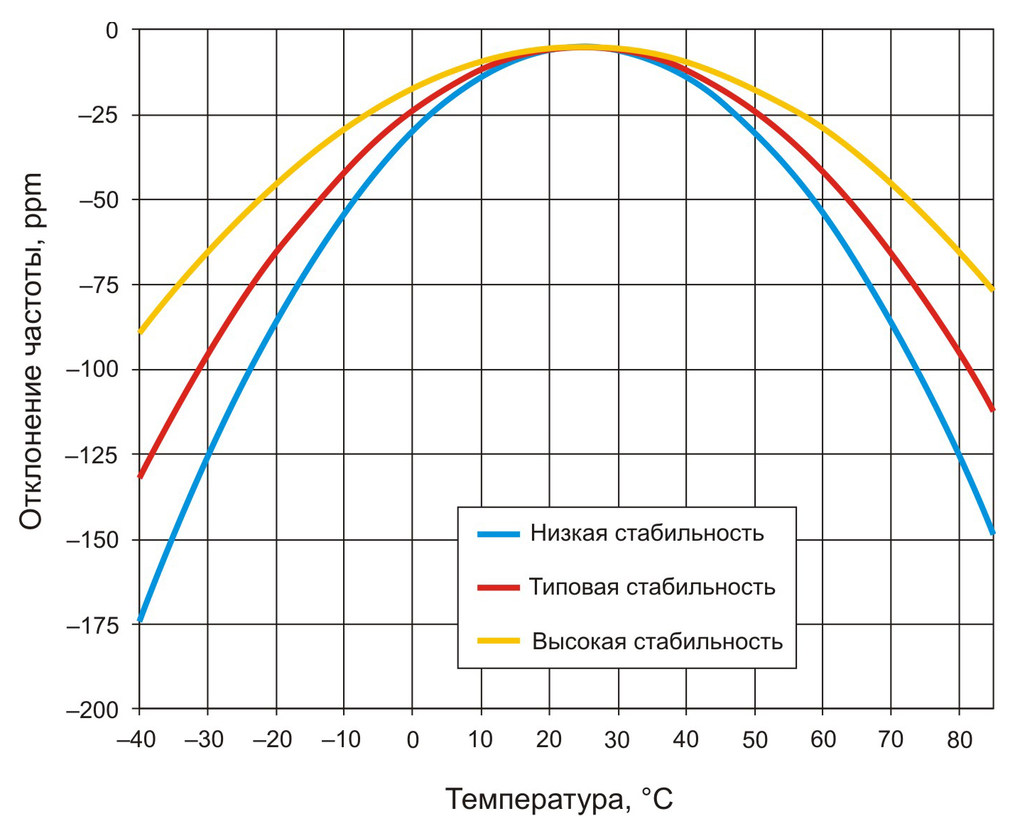 - стабильность частоты: выбирается из ряда ±10… ±100 ppm в зависимости от модификации;