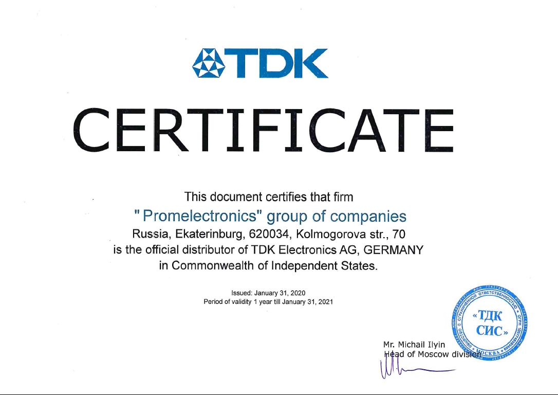 Epcos AG — известнейший германский производитель пассивных компонентов, основанный в 1999 г. как совместное предприятие Siemens и Matsushita (Panasonic). В 2008 г. японская корпорация TDK поглотила Epcos, которая в настоящее время носит название TDK Electronics AG. Это сказалось на финансовой независимости немецкой компании: богатый ассортимент продукции, линии её производства и состав конструкторов остались прежними, обеспечив сохранение высокого качества, надёжности и репутации товаров Epcos. "Промэлектроника" — официальный дистрибьютор продукции TDK Electronics AG.
