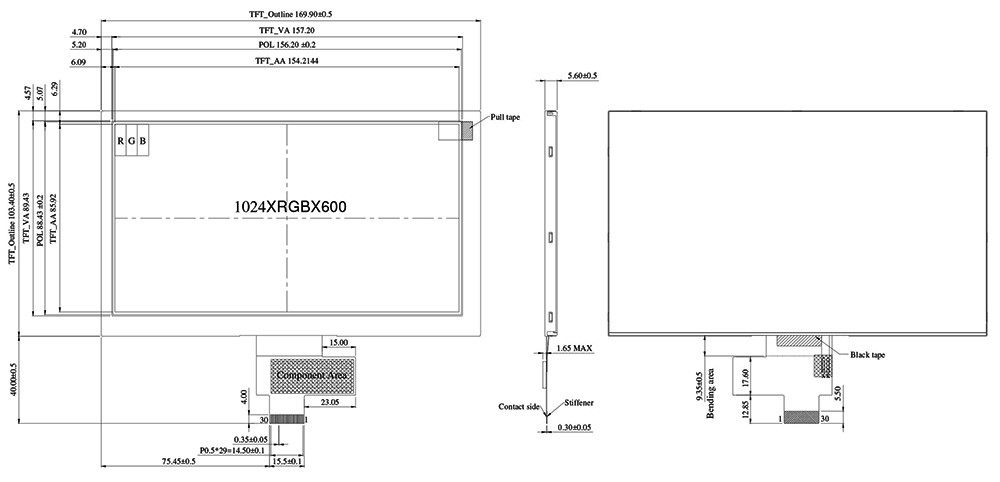 WF70A8TYAHMNN0 - 7" цветной IPS TFT модуль с разрешением 1024 x 600 пикселей. Дисплей имеет 2 встроенных контроллера EK7900AD3 и EK7321BCG , с поддержкой 4-х канального интерфейса MIPI DSI. Яркость – 600 Кд/м2, контрастность - 800:1 (типовое значение), широкие углы обзора: Левый угол: 85°/ Правый угол: 85°/ Верх: 85°/ Низ: 85°(типовое значение). Если применение требует дисплея с высокой яркостью – предлагается дисплей WF70A8SYAHMNN0 с яркостью – 1100 Кд/м2 (типовое значение).