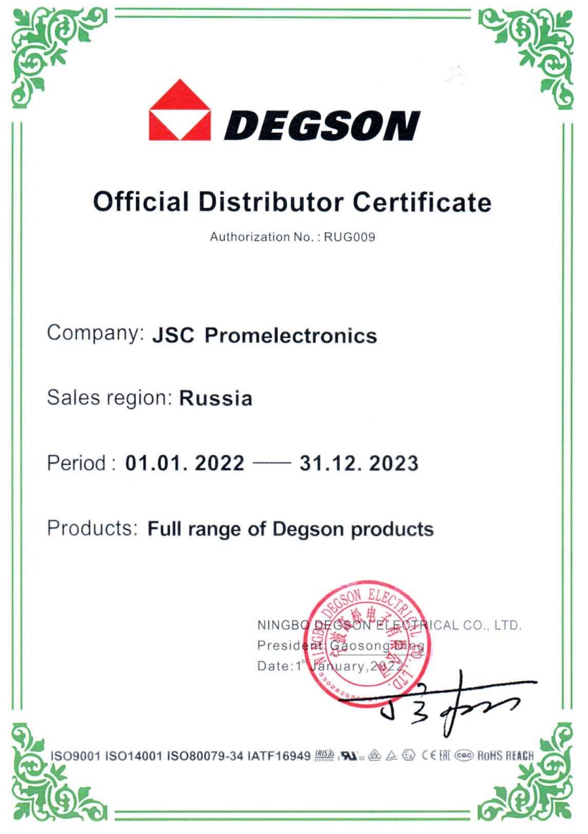 ГК "Промэлектроника" является официальным дистрибьютором продукции DEGSON. Наш склад регулярно пополняется продукцией данной компании.