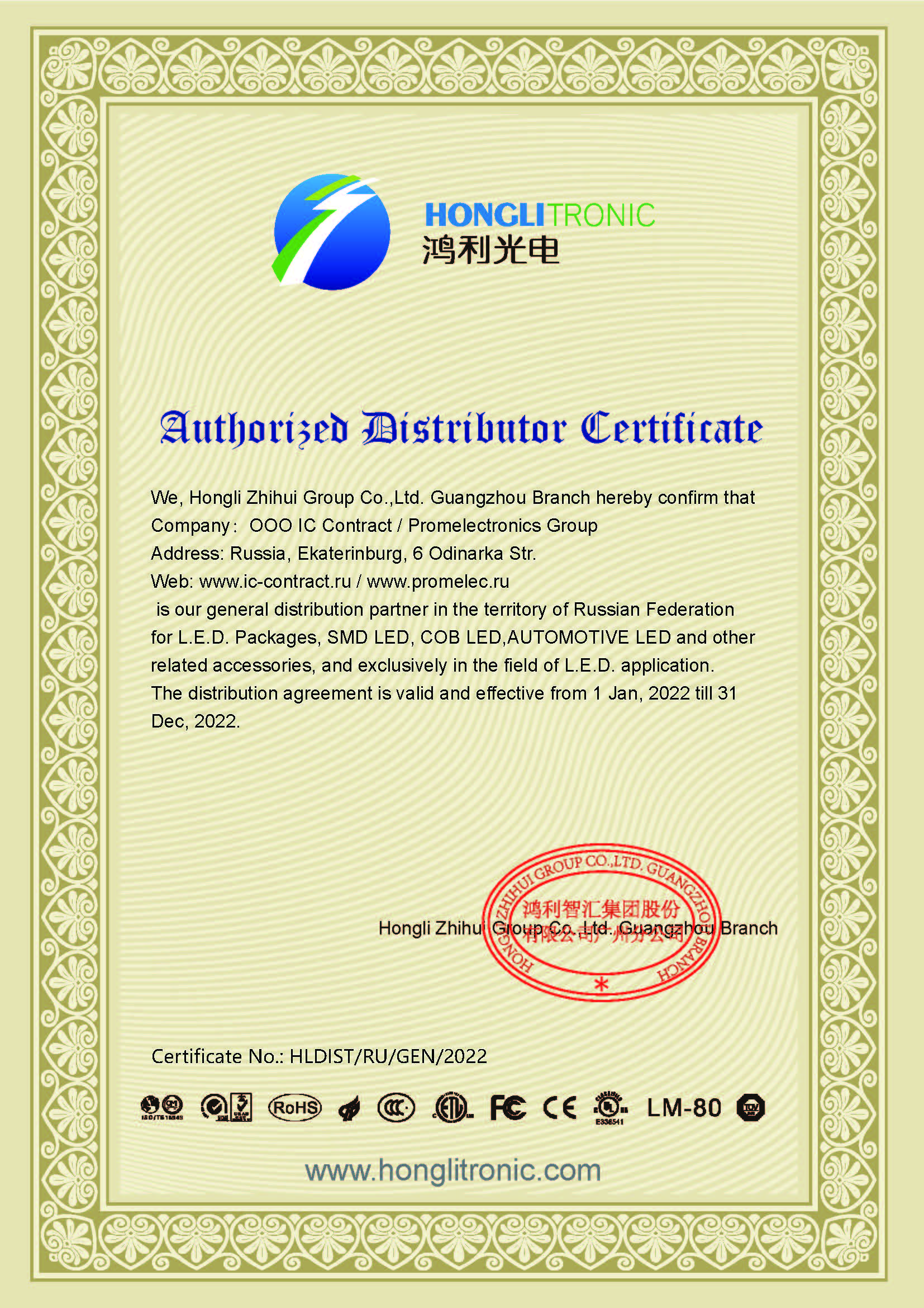 HongLi Opto-Electronic Co., Ltd. (Honglitronic) основана в 2004 г. в КНР (провинция Гуаньчжоу). В настоящее время это один из лидирующих поставщиков светодиодов в Китае. Компании принадлежит два завода, выпускающих более 1 млрд единиц продукции в месяц, включая следующие категории: