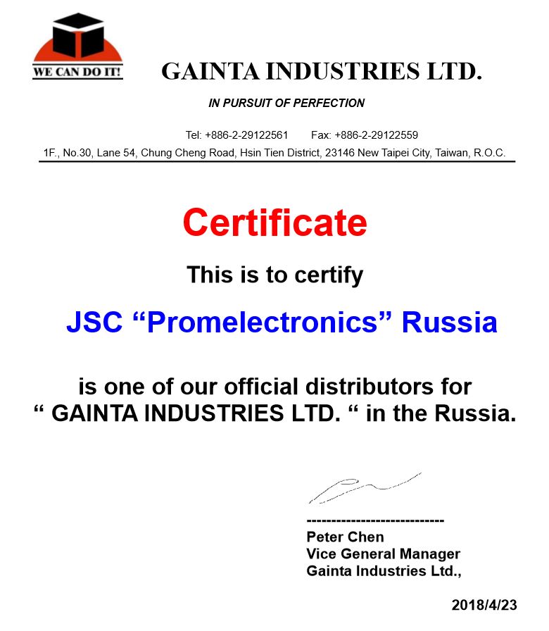 ООО ТД "Промэлектроника" – официальный дистрибьютор продукции GAINTA. Новое поступление продукции этой компании включает в себя