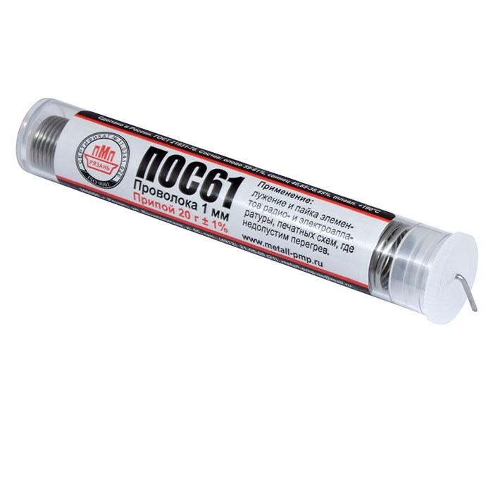 Припой трубчатый с канифолью ПОС61 1.0мм 16гр. колба
