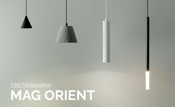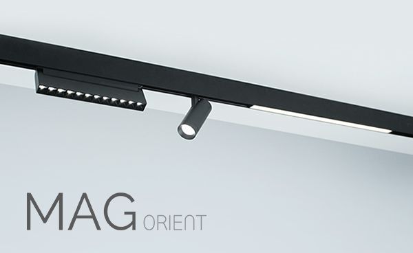 - MAG ORIENT – универсальная магнитная система для накладного, подвесного и встраиваемого монтажа. Система поддерживает диммирование по протоколу DALI и надёжно фиксирует светильники с помощью магнитов. Также доступны аксессуары для стильного оформления, такие как соединители под углом 90°;