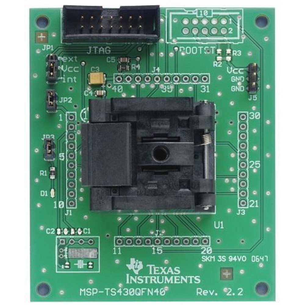 | Описание/функция | 40 pin QFN ZIF socket target board used to program and debug the MSP430 in system through the JTAG interface or the Spy Bi-Wire (2-wire JTAG) protocol |