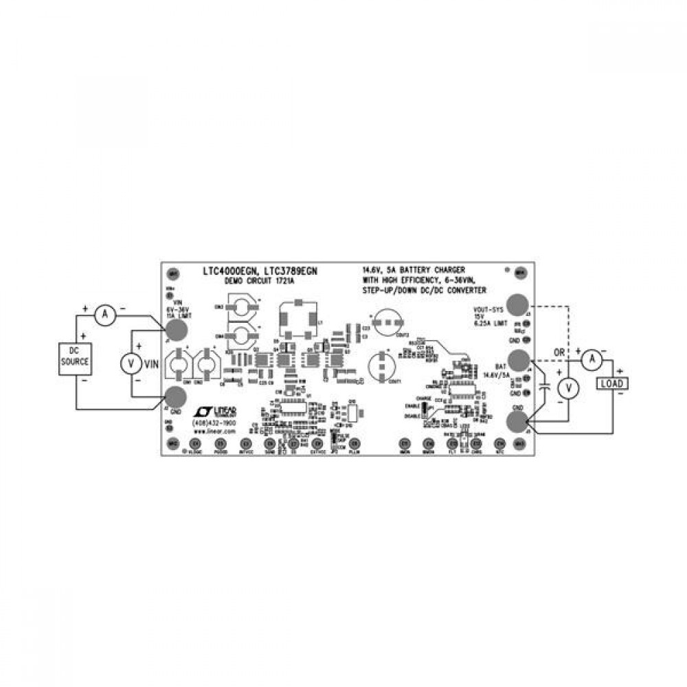 DC1721A, Средства разработки интегральных схем (ИС) управления питанием LTC4000EGN/LTC3789EGN Demo Board ? 14.6V