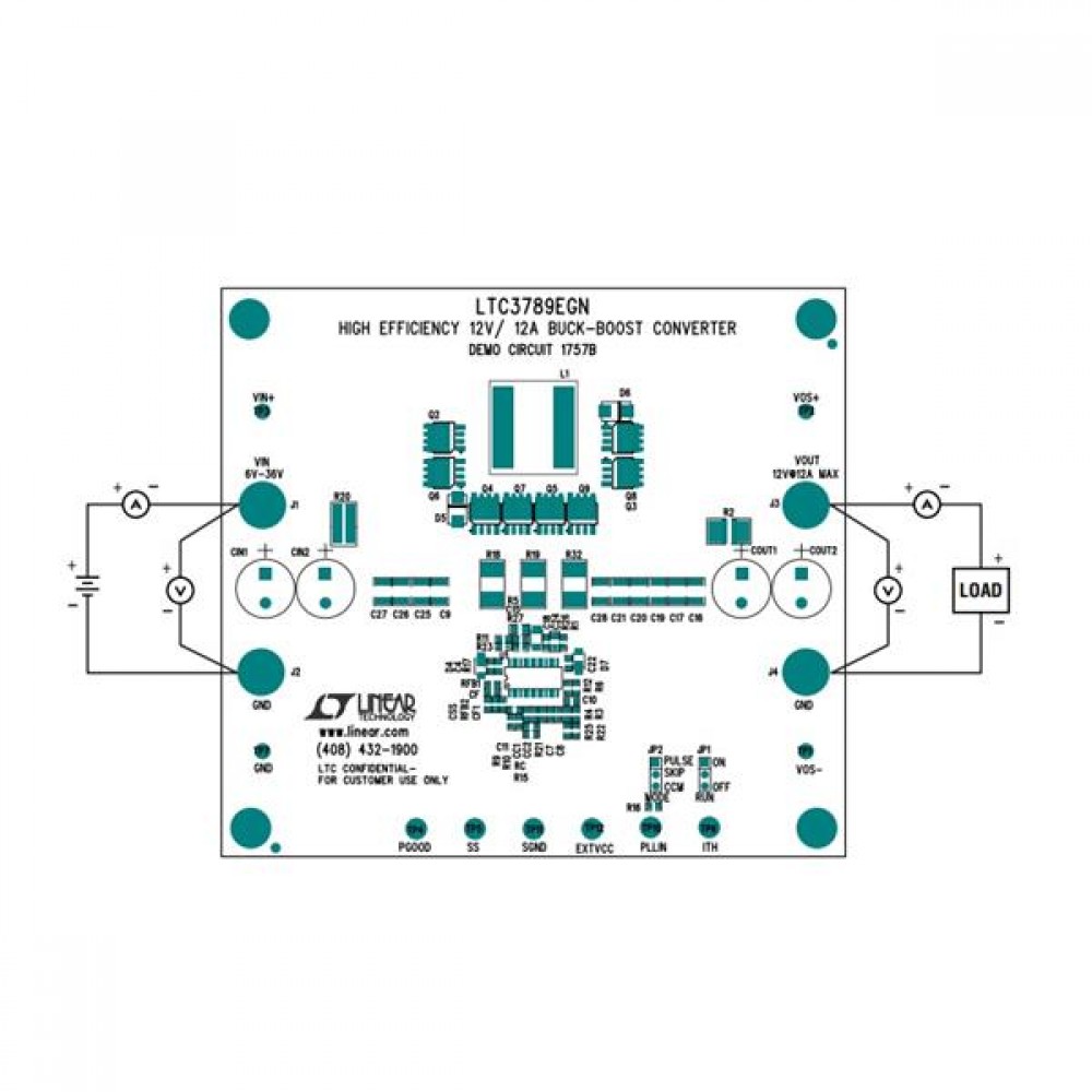 DC1757B, Средства разработки интегральных схем (ИС) управления питанием LTC3789EGN Buck-Boost Demo Board - VIN =