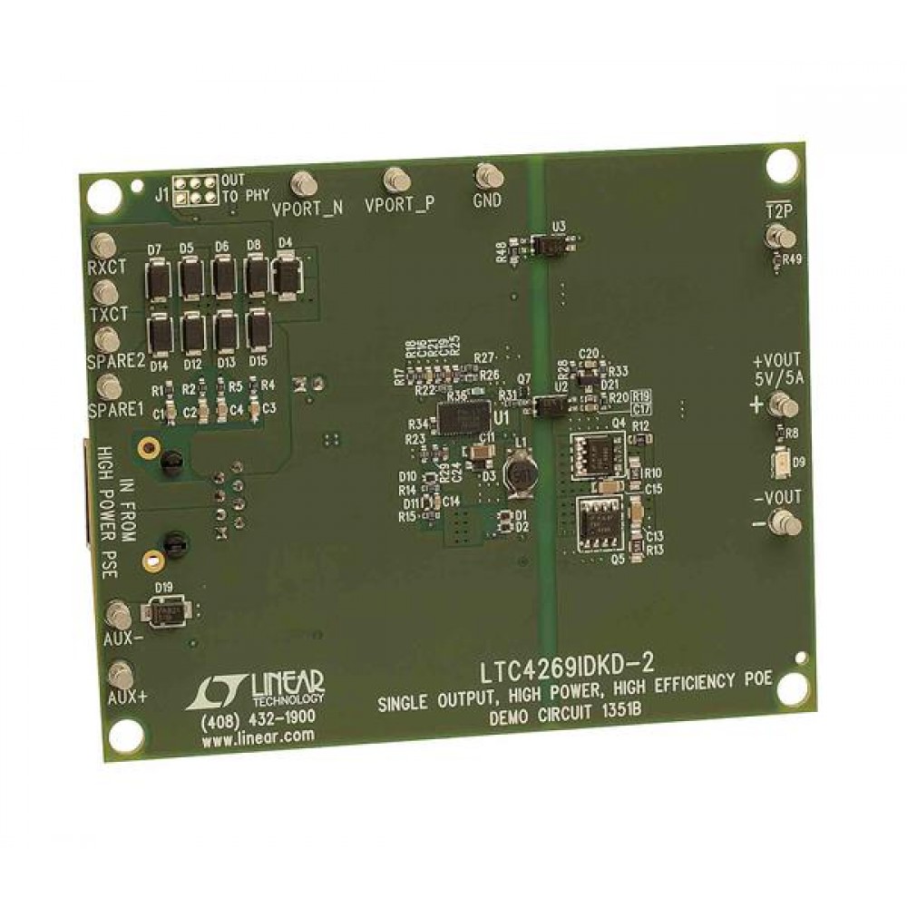 DC1351B, Средства разработки интегральных схем (ИС) управления питанием LTC4269-2 - PoE Powered Device w/48V Iso