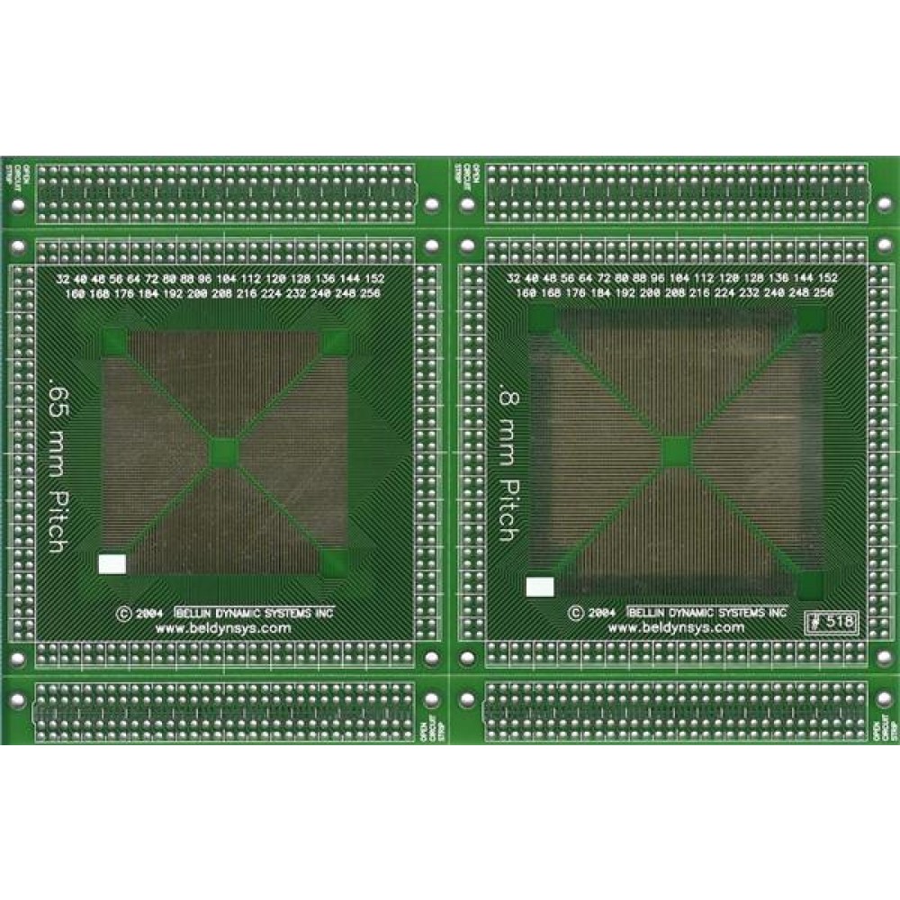 B518, Печатные и макетные платы QFP: 32 pin 40 48 (by 8's) to 256
