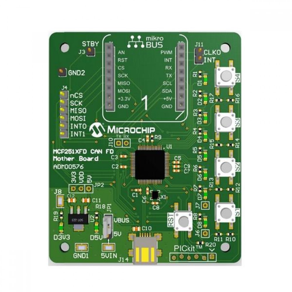 Доставка ADM00576 , Средства разработки интерфейсов MCP251xFD CAN FD Mother Board