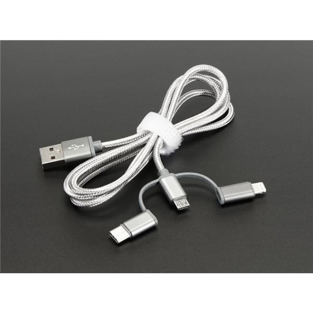 3679, Принадлежности Adafruit USB 3-in-1 Sync and Charge Cable - Micro B / Type-C / Lightning