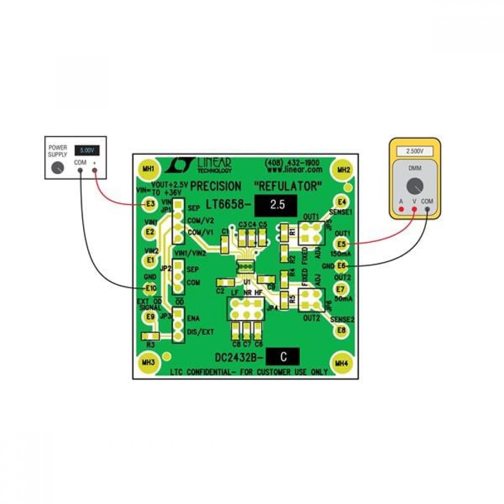 Доставка DC2432B-E , Средства разработки интегральных схем (ИС) управления питанием LT6658-3.3 Demoboard -Low Noise, High Cu