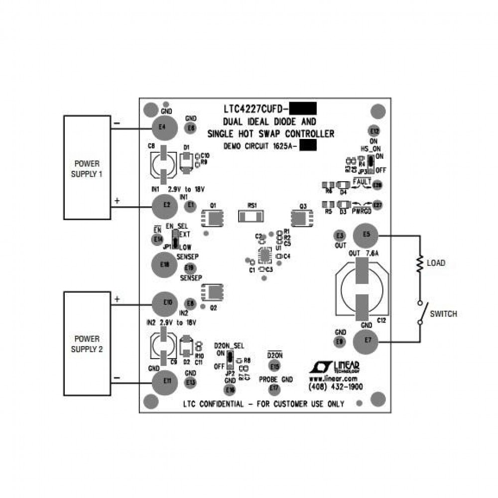 DC1625A-A, Средства разработки интегральных схем (ИС) управления питанием LTC4227CUFD-1 Demo Board: Dual Ideal Dio