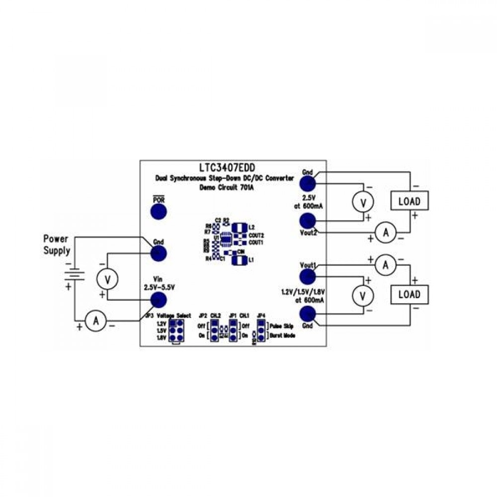 DC701A, Средства разработки интегральных схем (ИС) управления питанием LTC3407EDD - Dual Synchronous Step-Down