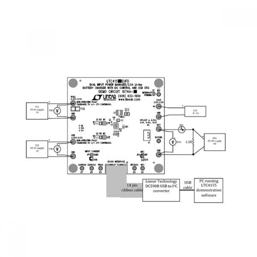 Доставка DC1674A-A , Средства разработки интегральных схем (ИС) управления питанием LTC4155EUFD Demo Board I VIN = 4.35V to