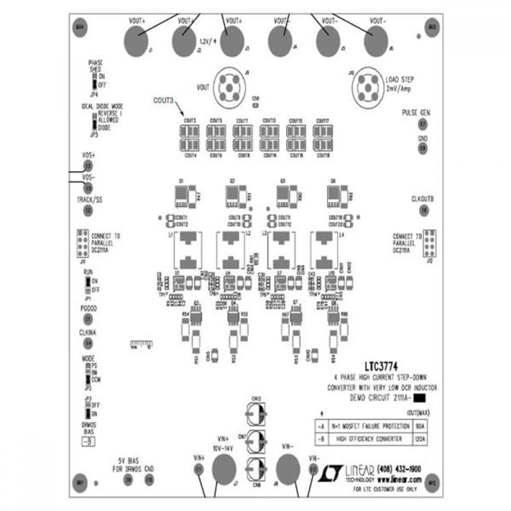 DC2111A-A, Средства разработки интегральных схем (ИС) управления питанием LTC3774EUHE Demo Board 10V - 14V Input to 1.2V at 90A Output @ 89% Efficiency