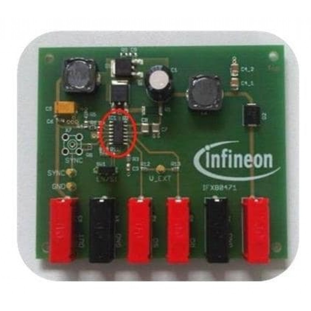 DEMOBOARDIFX80471VTOBO1, Средства разработки интегральных схем (ИС) управления питанием Multi-purpose buck controller for external PMOS switch, 5V or adjustable output voltage, maximum of 2.3A output current, low quiescent current.