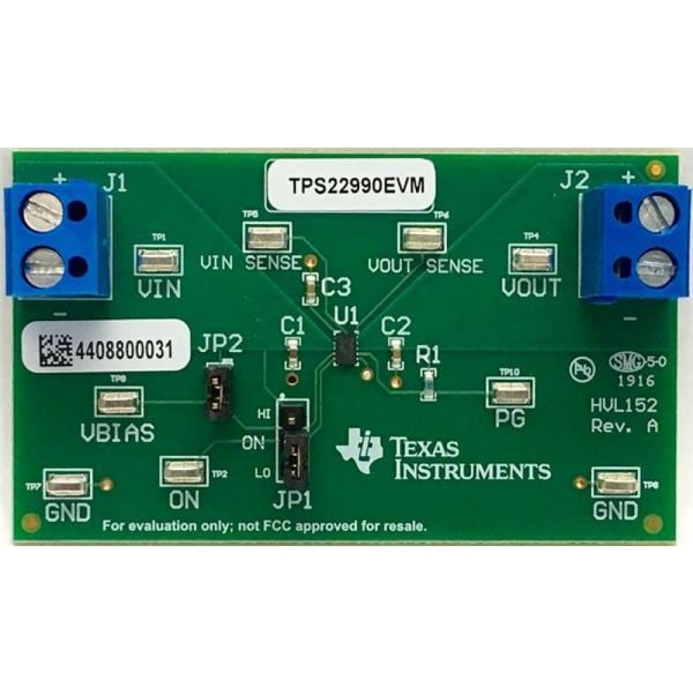 TPS22990EVM, Средства разработки интегральных схем (ИС) управления питанием EVALUATION MODULE FOR THE TPS22990