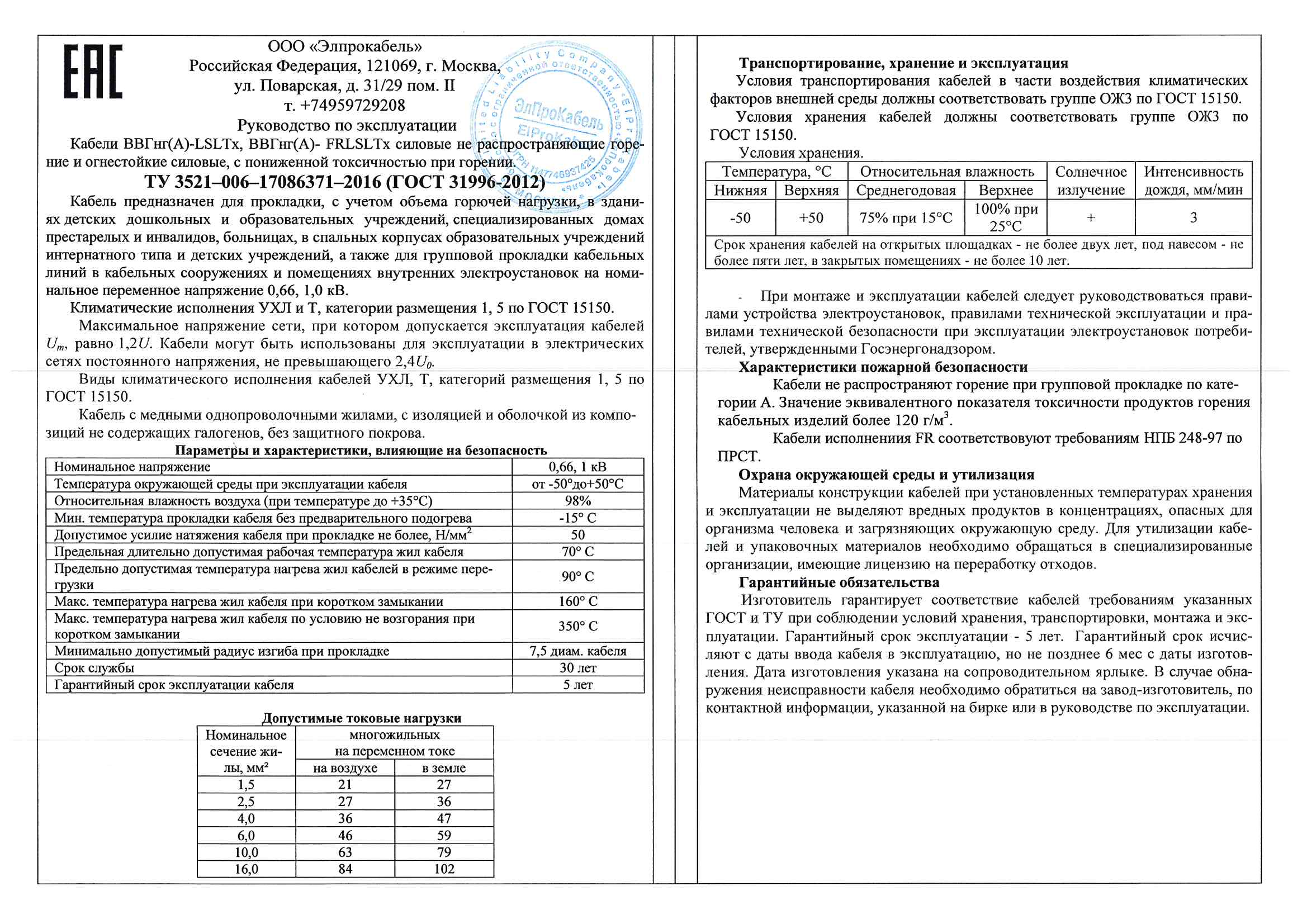 ← Кабель силовой ВВГнг(А)-LS 4х4,0 ок (N)-0,66 ТРТС 11540