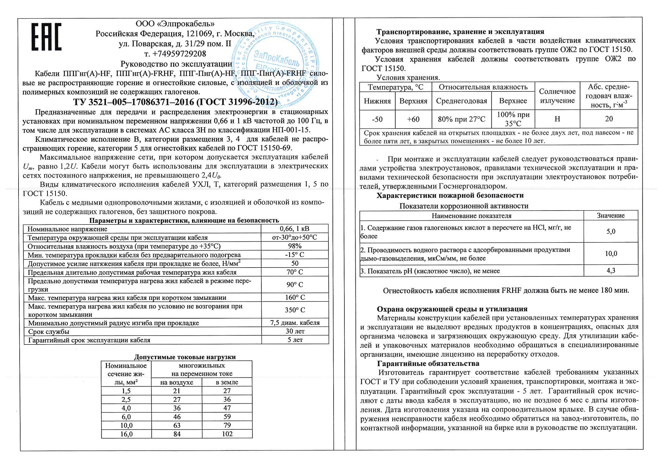 Описание Кабель силовой ППГнг(А)-FRHF 3*1,5 -0,66кВ ТРТС 77055001445