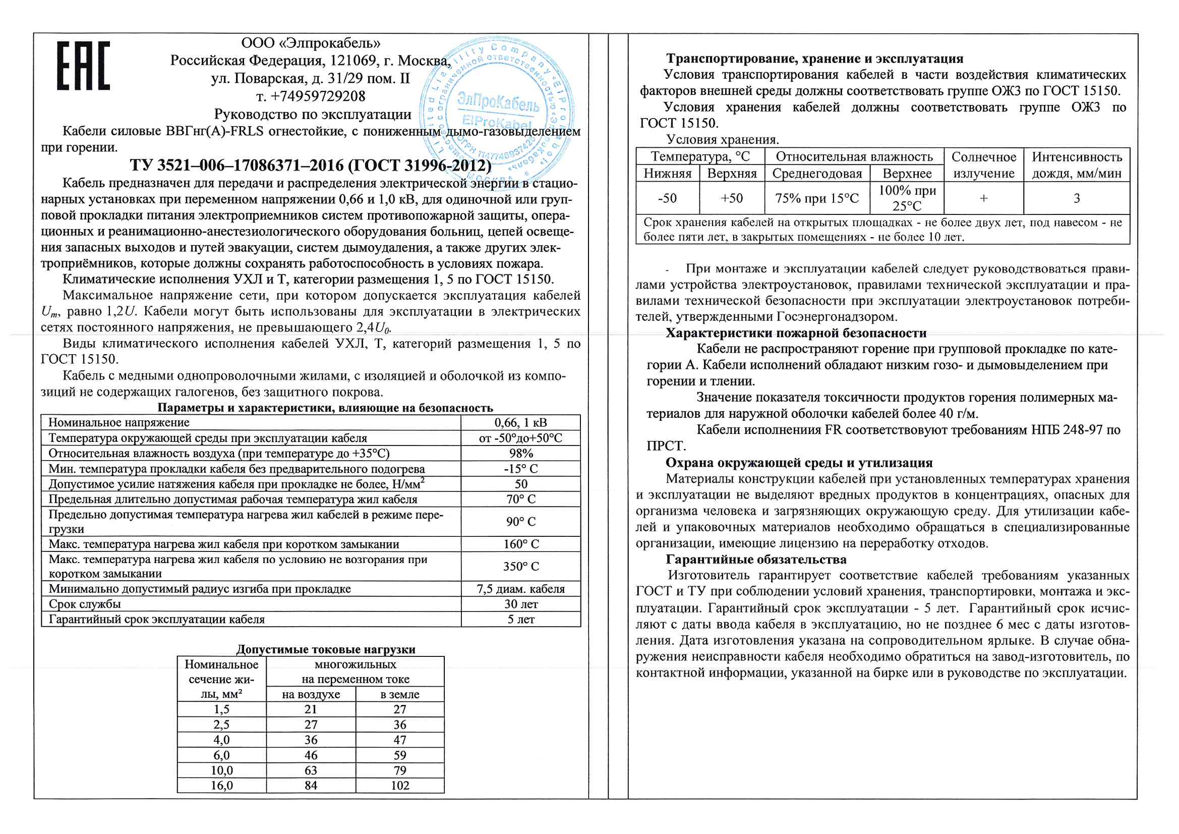 Описание Кабель силовой ВВГнг(А)-FRLSLTx 3х1.5 -0,66кВ плоск ТРТС 77872001147