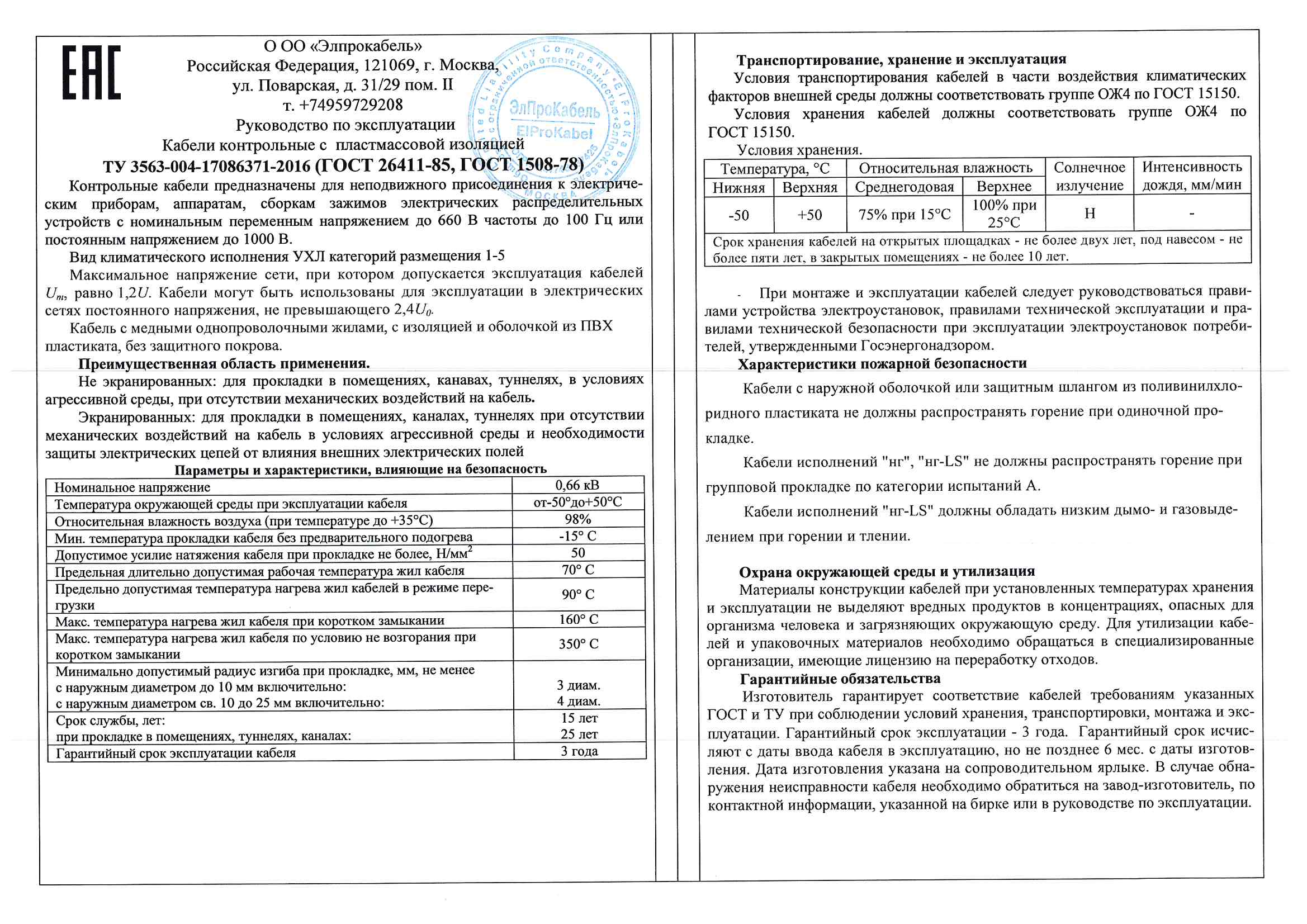 ← Кабель контрольный КВВГнг (А) LS 5х1.5 ТРТС 77055000773