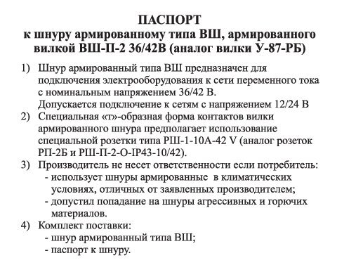 Доставка Вилка У-87-РБ (36/42в) шнур - 1м. 42102