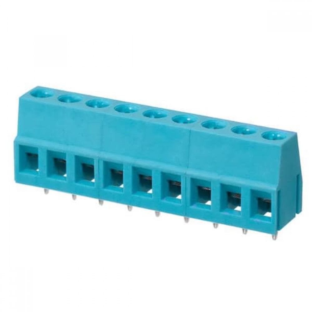 TB004-508-09BE, Фиксированные клеммные колодки Terminal block, screw type, 5.08 , horizontal, 9 poles, CUI Blue, slotted screw, PCB mount