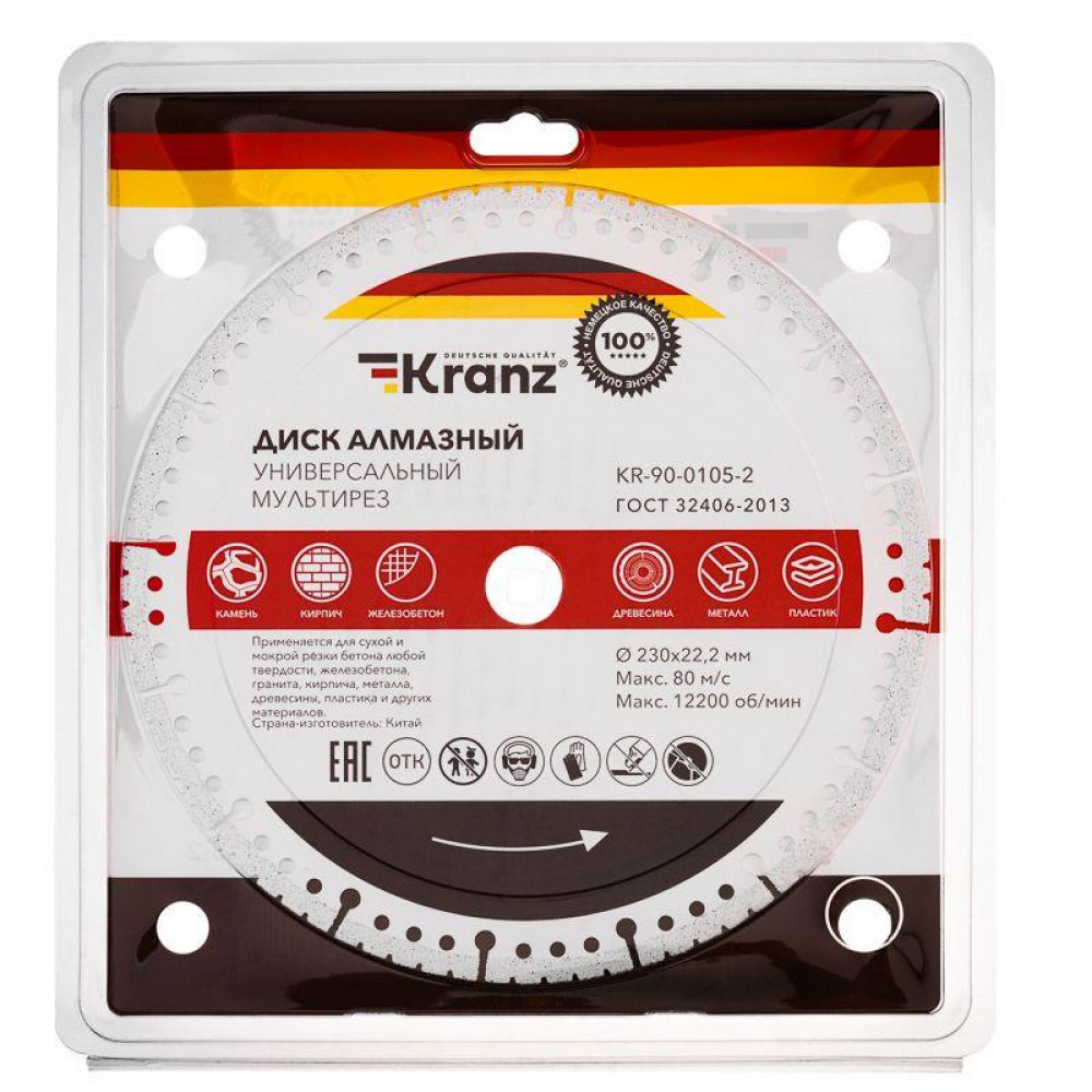 Описание Диск алмазный универсальный, мультирез, вакуумное спекание, профессиональный, 230х22,2мм KR-90-0105-2