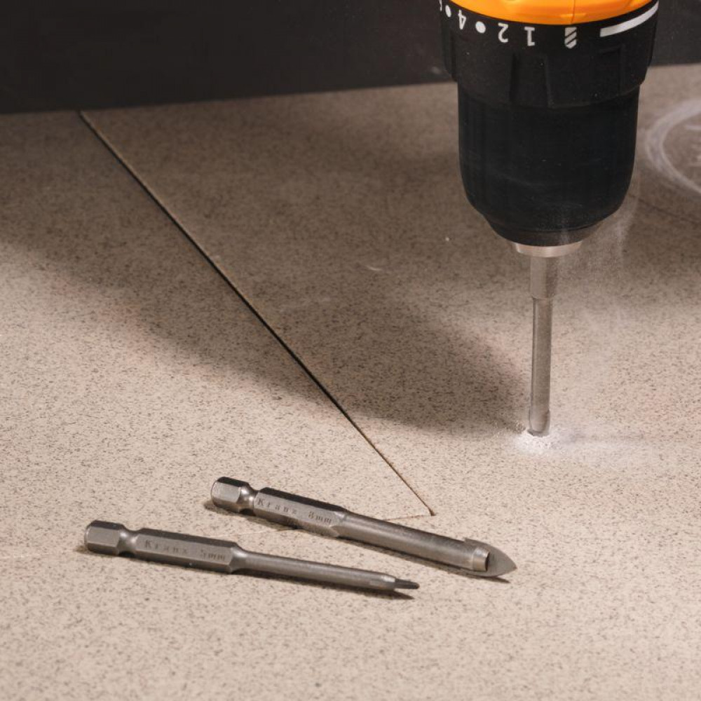 Набор сверл по керамической плитке, 5-6-8мм, шестигранный хвостовик KR-91-0655, Сверло, метчик, плашка