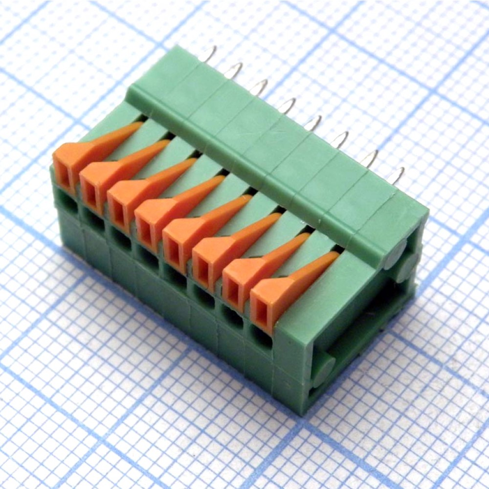 Нажимной безвинтовой клеммный блок 8 контактов. Зажим типа торцевой контакт. Серия DG141V-2.54