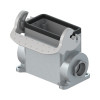Основание разъема на панель, закрытое, типоразмер 6B, высокое исполнение, с уплотнителем, 2 отверстия с резьбой для кабельных вводов M25x1,5, с одной металлической защелкой, без защитной крышки, материал корпуса: алюминиевый сплав