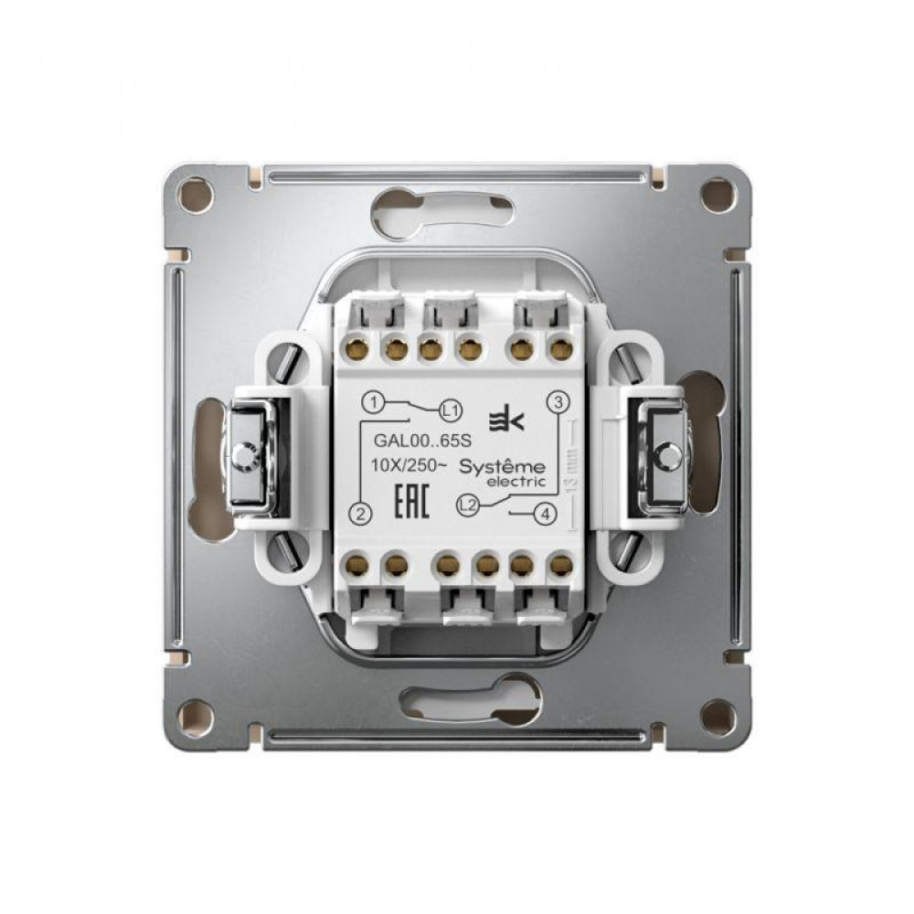 ARTGALLERY 2-клавишный ВЫКЛЮЧАТЕЛЬ, 10АХ, механизм, быстрозажимные клеммы, КАРБОН GAL001051S →