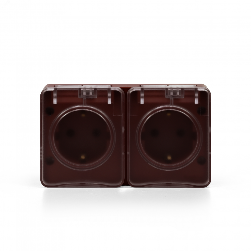AtlasDesign PROFI IP54 О/У РОЗЕТКА двойная с з/к со шторками 16А, КОРИЧНЕВЫЙ ATN546026, Розетка открытого монтажа