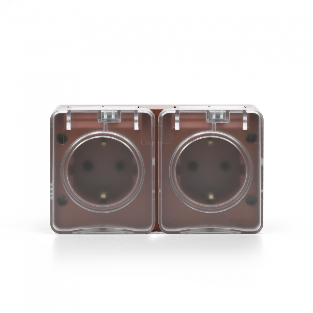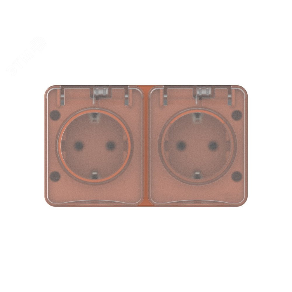 AtlasDesign PROFI IP54 О/У РОЗЕТКА двойная с з/к со шторками 16А, ТЕРРАКОТОВЫЙ ATN547026, Розетка открытого монтажа
