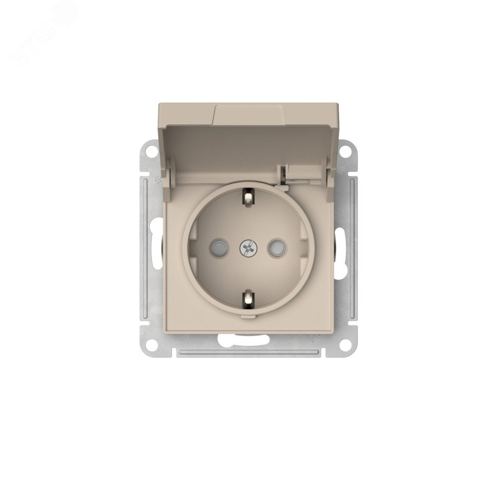 ATLASDESIGN РОЗЕТКА с заземл. со шторк. с крышкой, 16А,IP20,мех., быстрозажимные клеммы, ПЕСОЧНЫЙ ATN001246S, Розетка скрытого монтажа