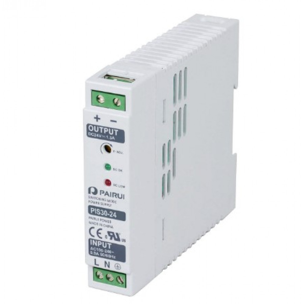 PIS30-5, Преобразователь AC-DC на DIN-рейку 31.2Вт, вход 90…264V AC, 50…60Гц /127…370В DC, выход 5В/5.8A, рег. вых 5…6В, КПД 80%, изоляция 3000В AC, 22.5х95.3х108мм, -20…+70°С