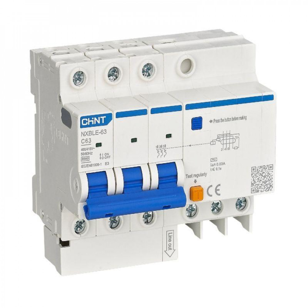← АВДТ NXBLE-63 3P+N C6 30мА тип AС 6кА, электронный (R) 982110
