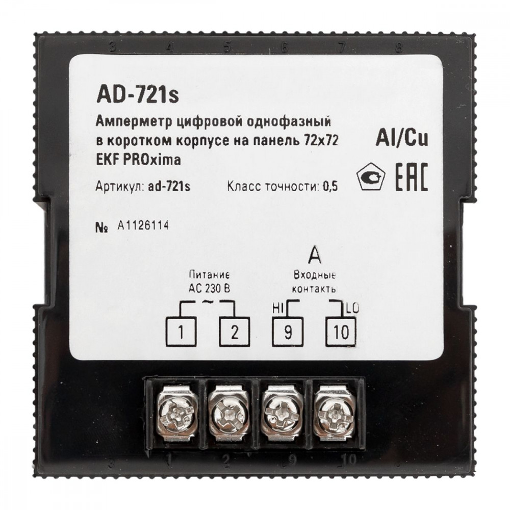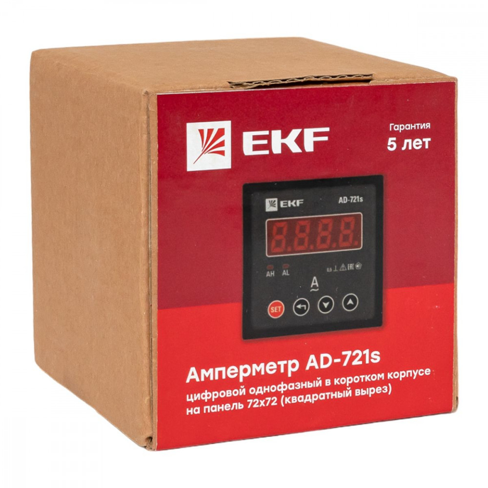 Описание Амперметр AD-721s цифровой на панель 72x72 (квадратный вырез) однофазный в коротком корпусе EKF PROxima AD-721s