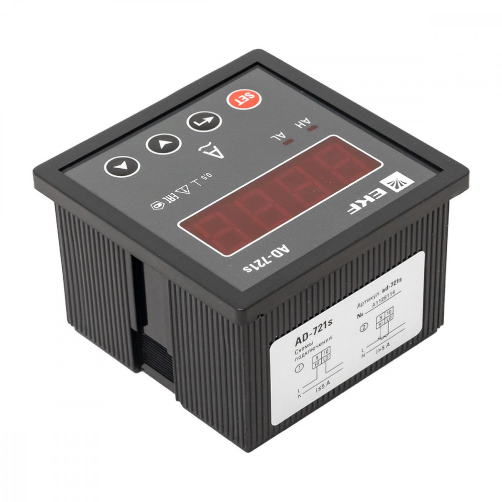 Амперметр AD-721s цифровой на панель 72x72 (квадратный вырез) однофазный в коротком корпусе EKF PROxima AD-721s, Амперметр встраиваемый