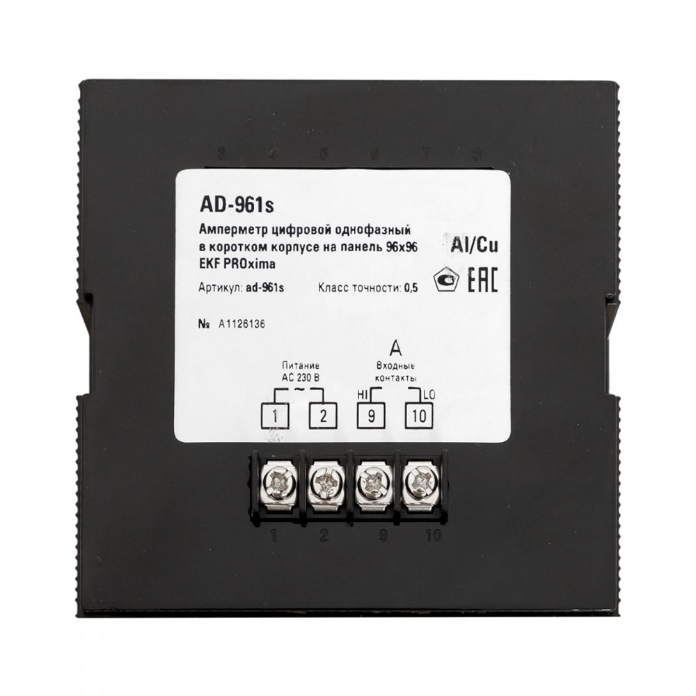 Амперметр AD-961s цифровой на панель 96x96 (квадратный вырез) однофазный в коротком корпусе EKF PROxima AD-961s, Амперметр встраиваемый